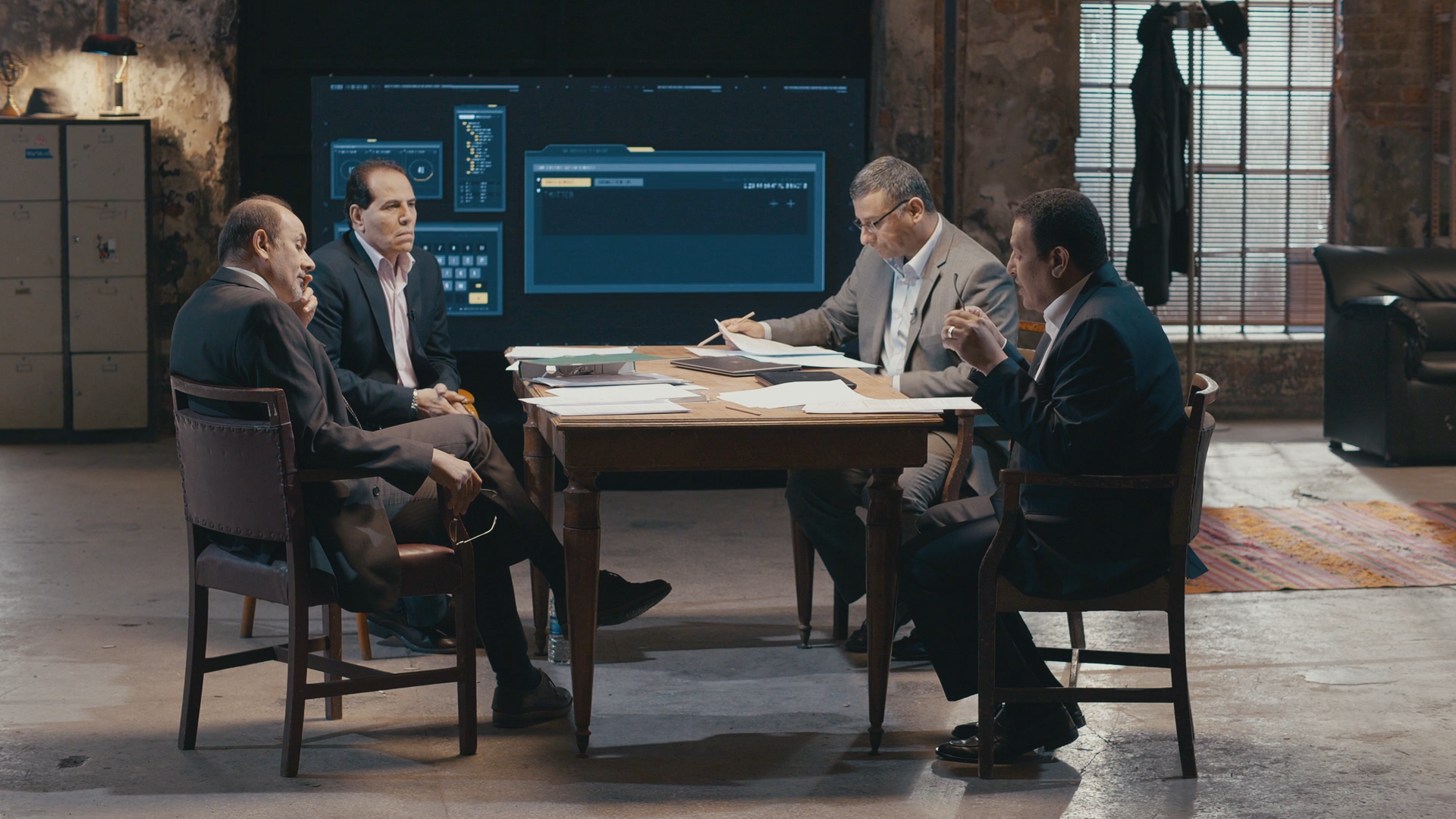 They then gather at the round table for us to see them in their real environment .. They discuss the evidence, like press releases, documents, leaks ,information from foreign newspapers, and others .. They are professional and do not sympathize except with the truth.